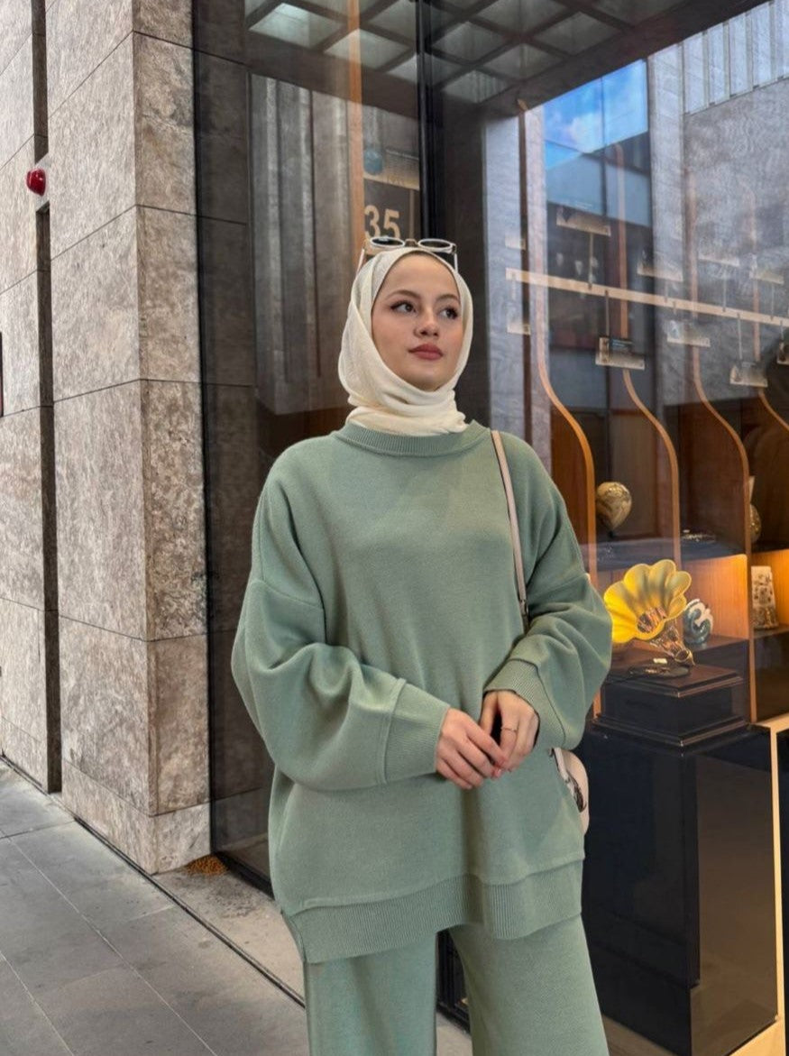 Découvrez cet ensemble décontracté et élégant, parfait pour un look raffiné au quotidien. Fabriqué dans une matière douce et respirante, il allie confort et style avec sa coupe ample et sa teinte apaisante de vert sauge. Idéal pour les femmes voilées à la recherche d'un vêtement pratique tout en restant chic. Associez-le à vos accessoires préférés pour un look personnalisé.